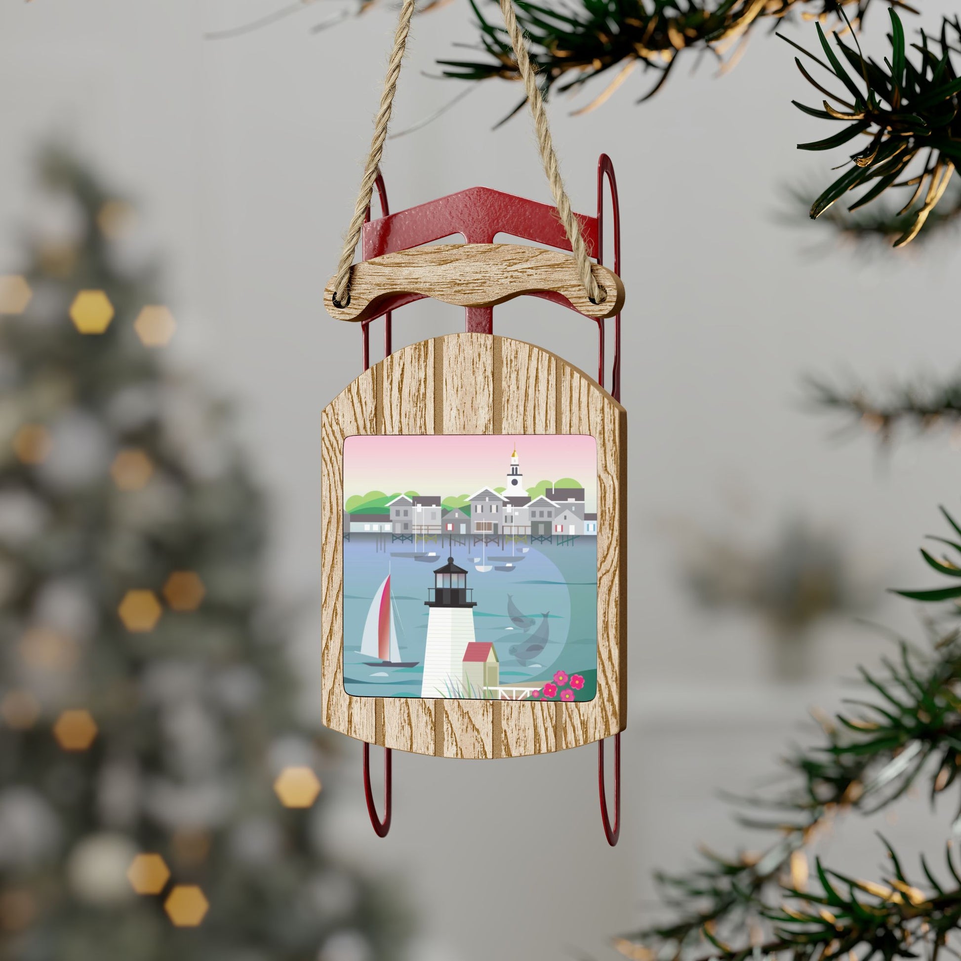 Sled into the holidays with our sled ornament featuring your favorite spot!