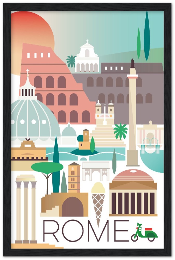 Rom Premium-Poster aus mattem Papier mit Holzrahmen