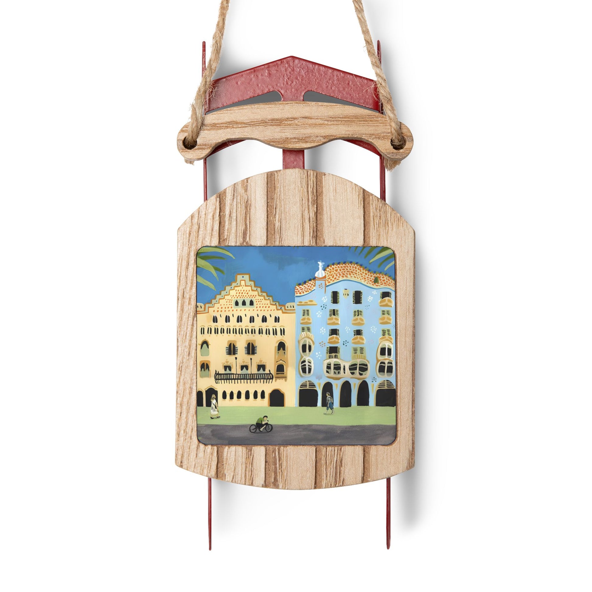 Sled into the holidays with our sled ornament featuring your favorite spot!