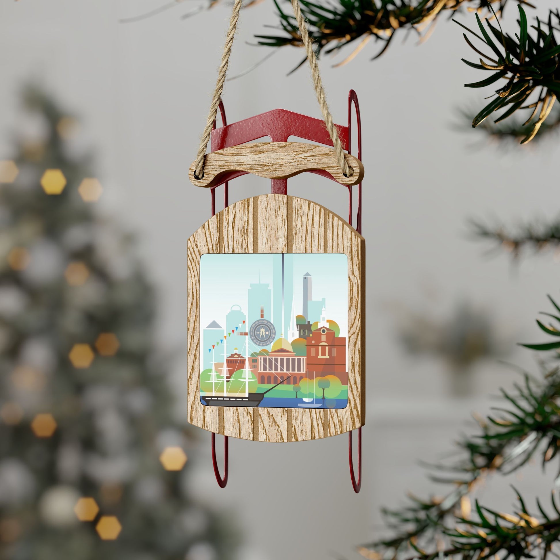 Sled into the holidays with our sled ornament featuring your favorite spot!