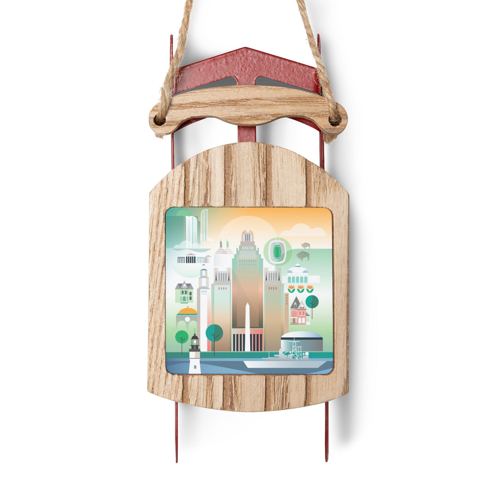 Sled into the holidays with our sled ornament featuring your favorite spot!