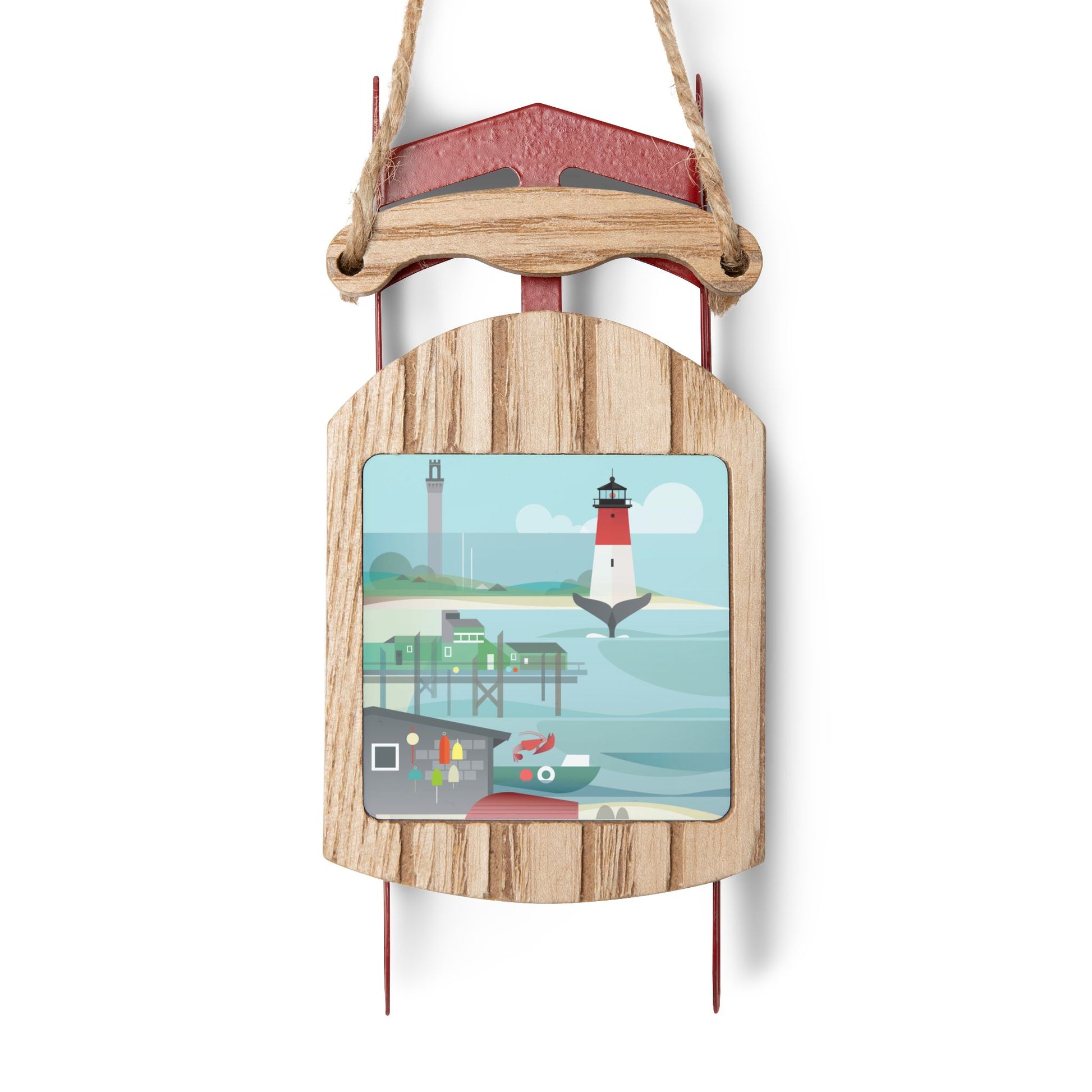 Sled into the holidays with our sled ornament featuring your favorite spot!