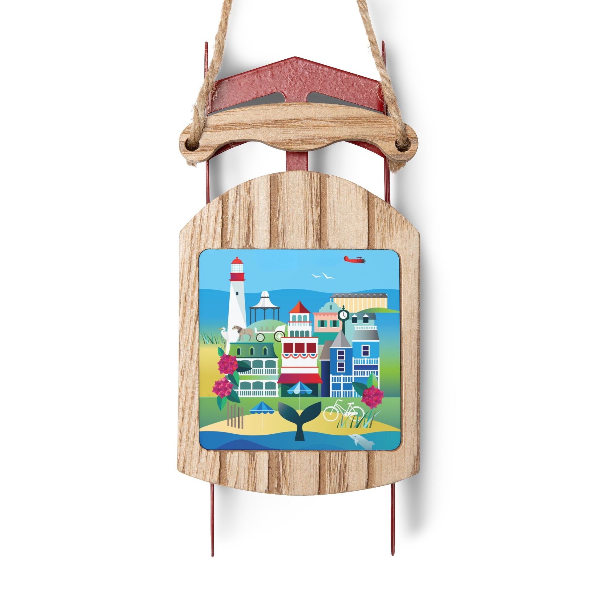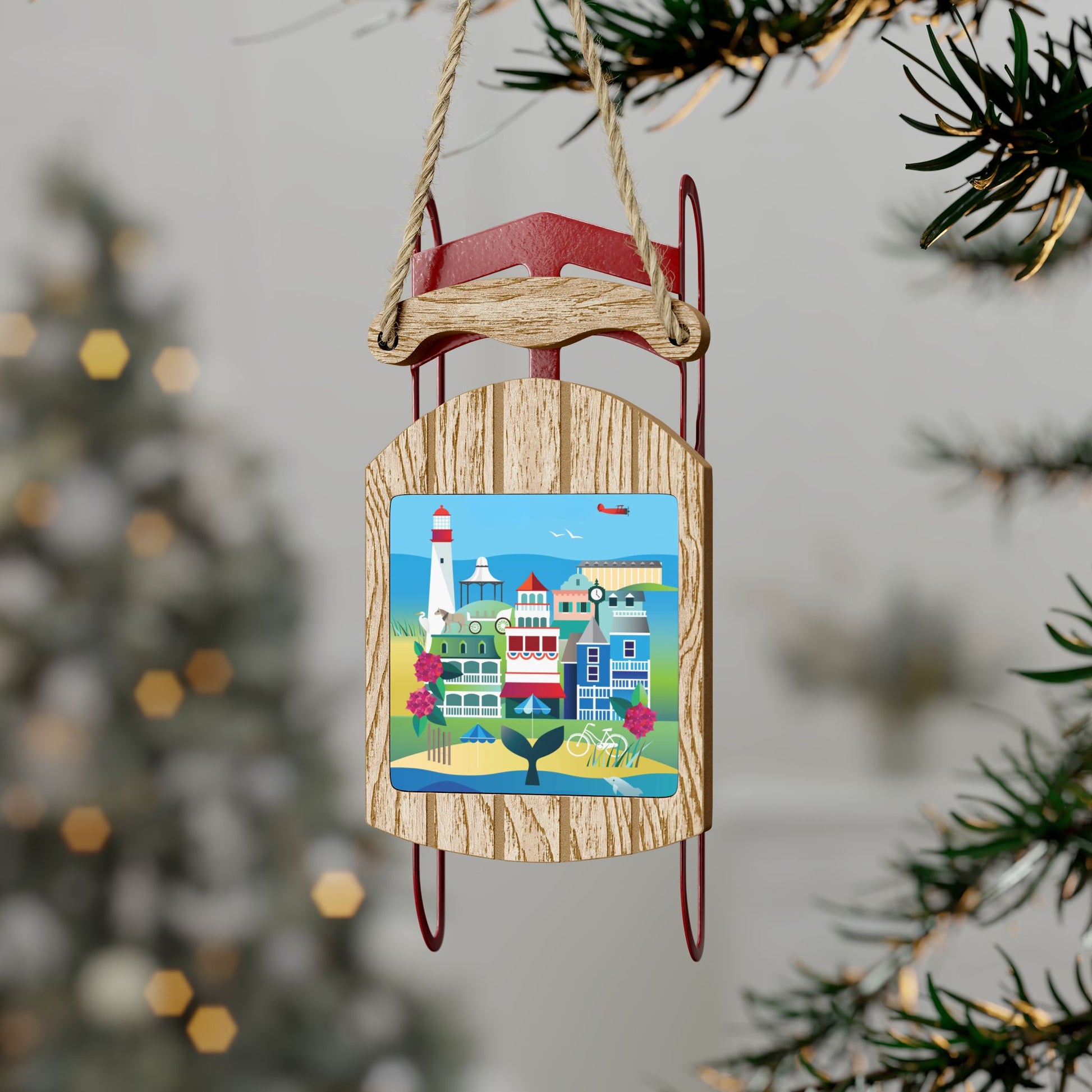Sled into the holidays with our sled ornament featuring your favorite spot!