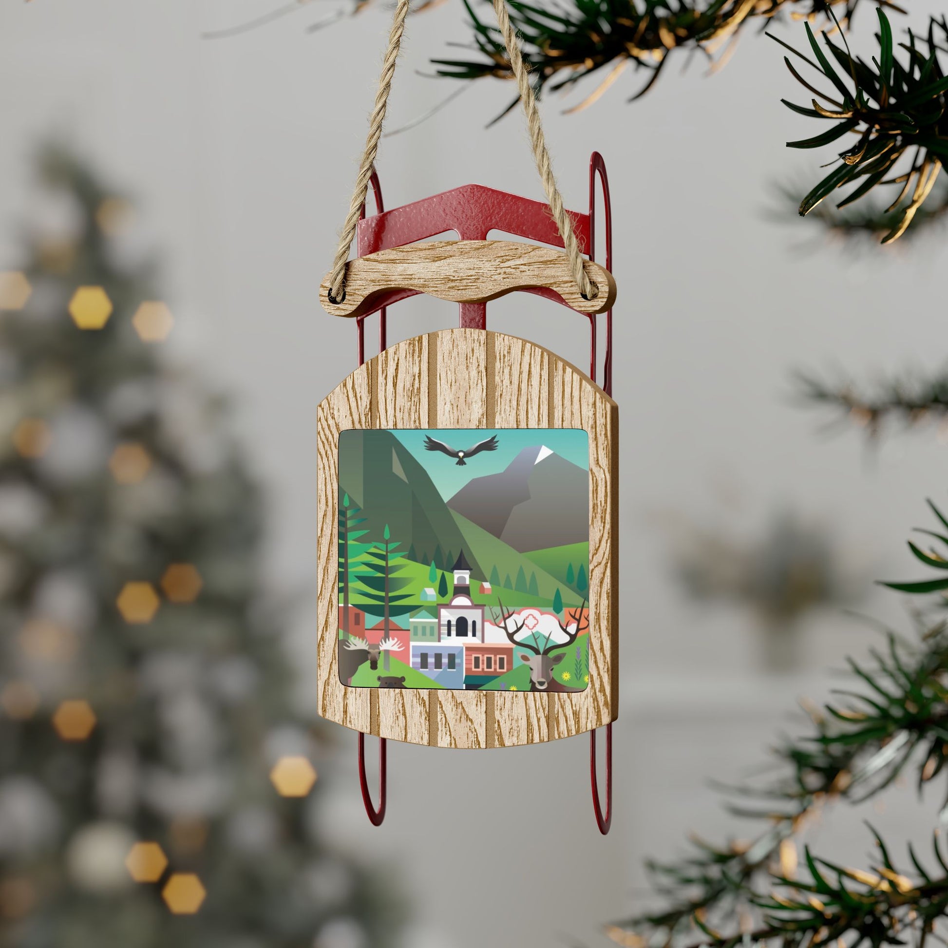 Sled into the holidays with our sled ornament featuring your favorite spot!