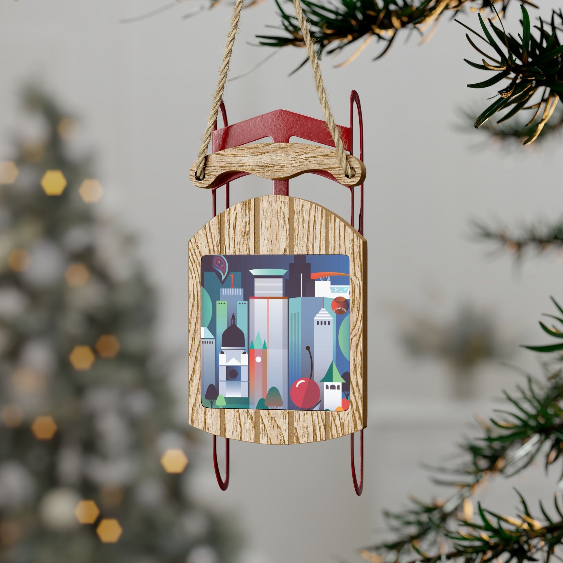 Sled into the holidays with our sled ornament featuring your favorite spot!