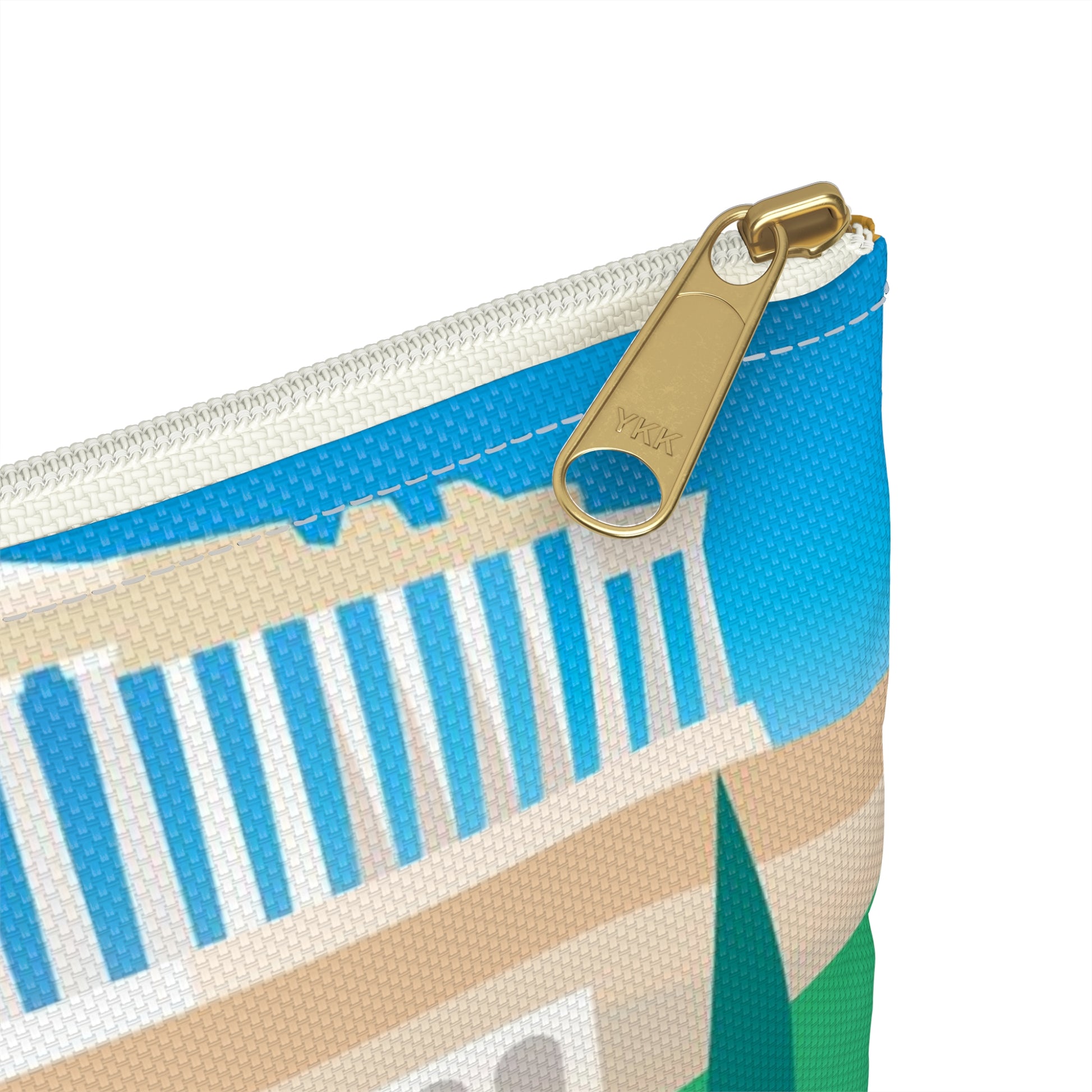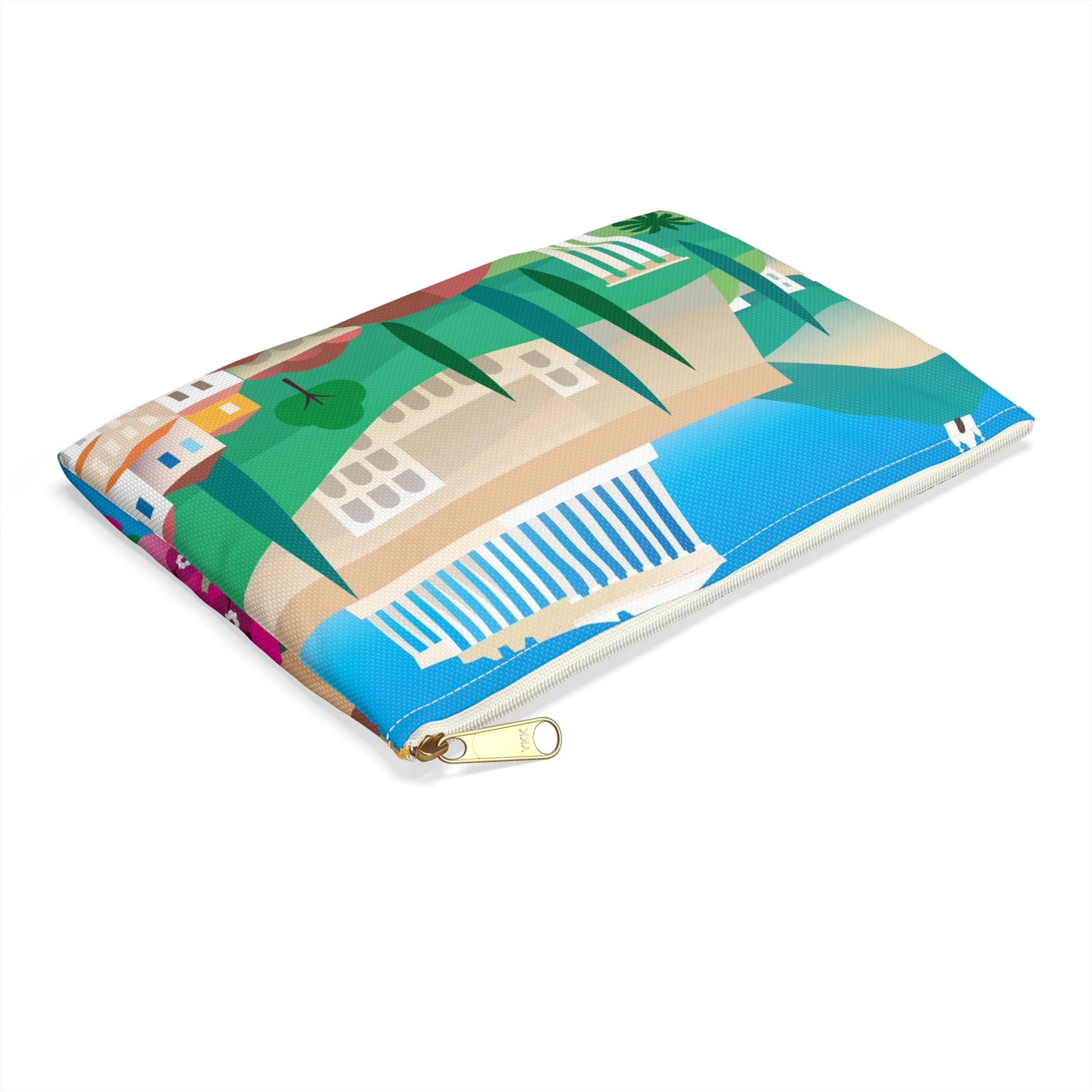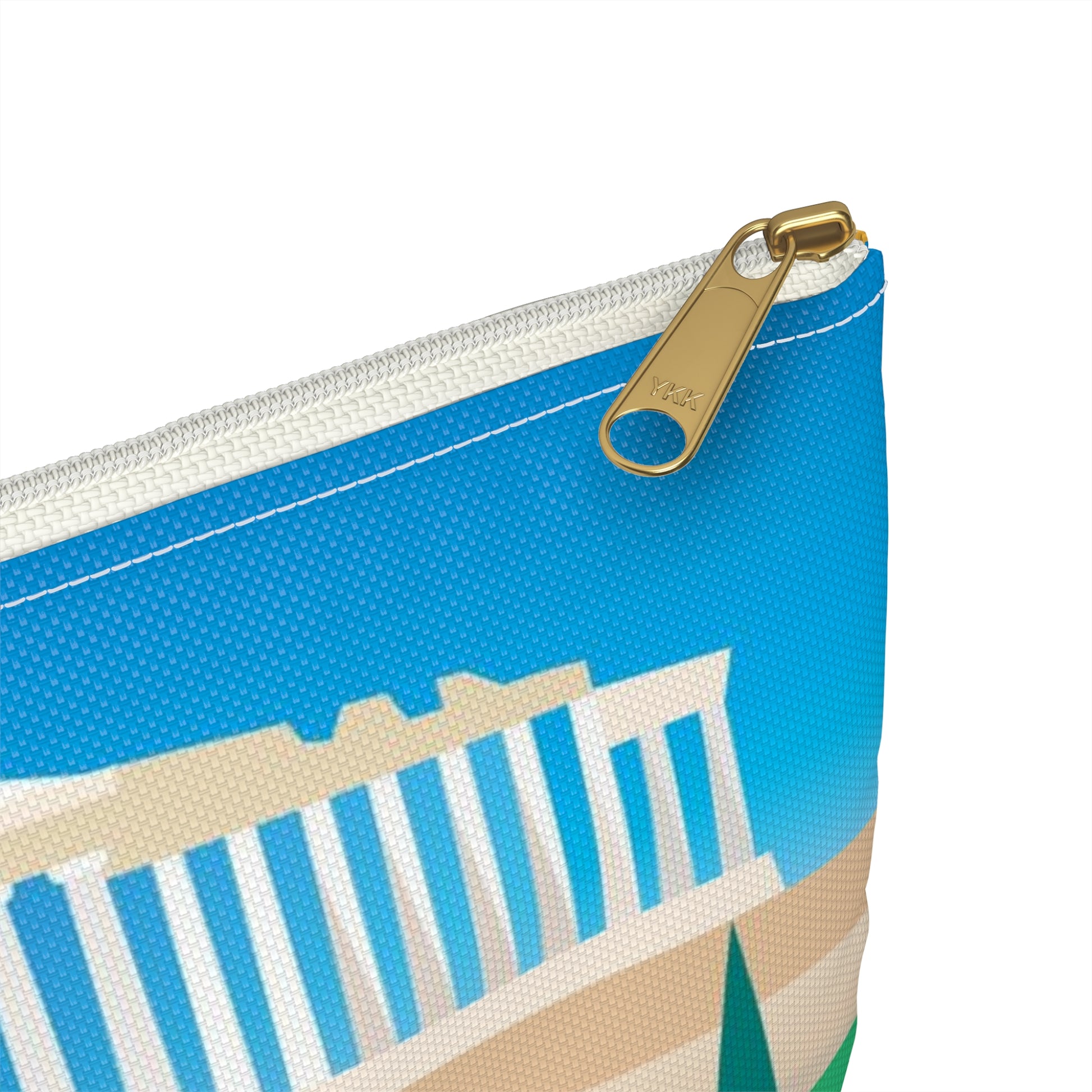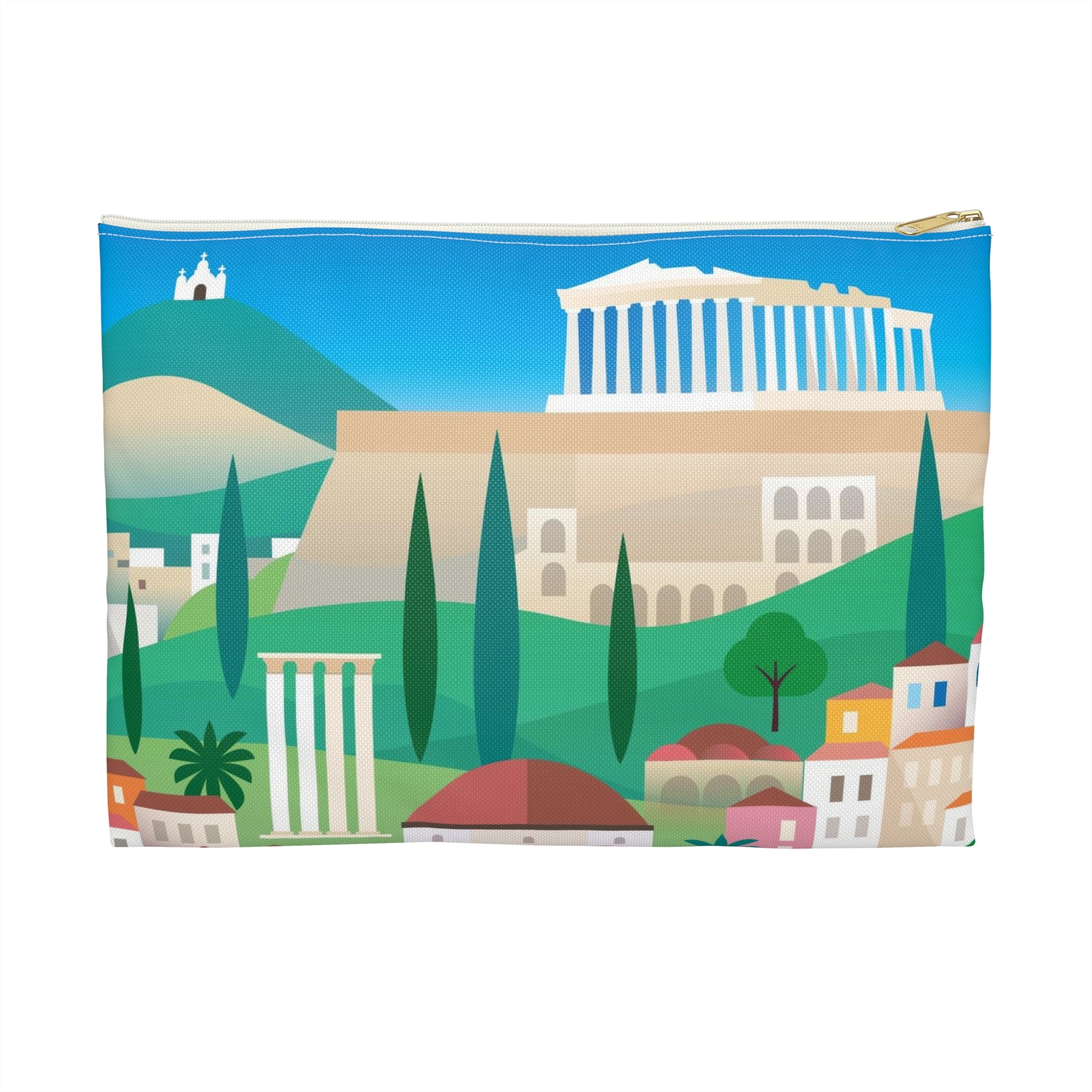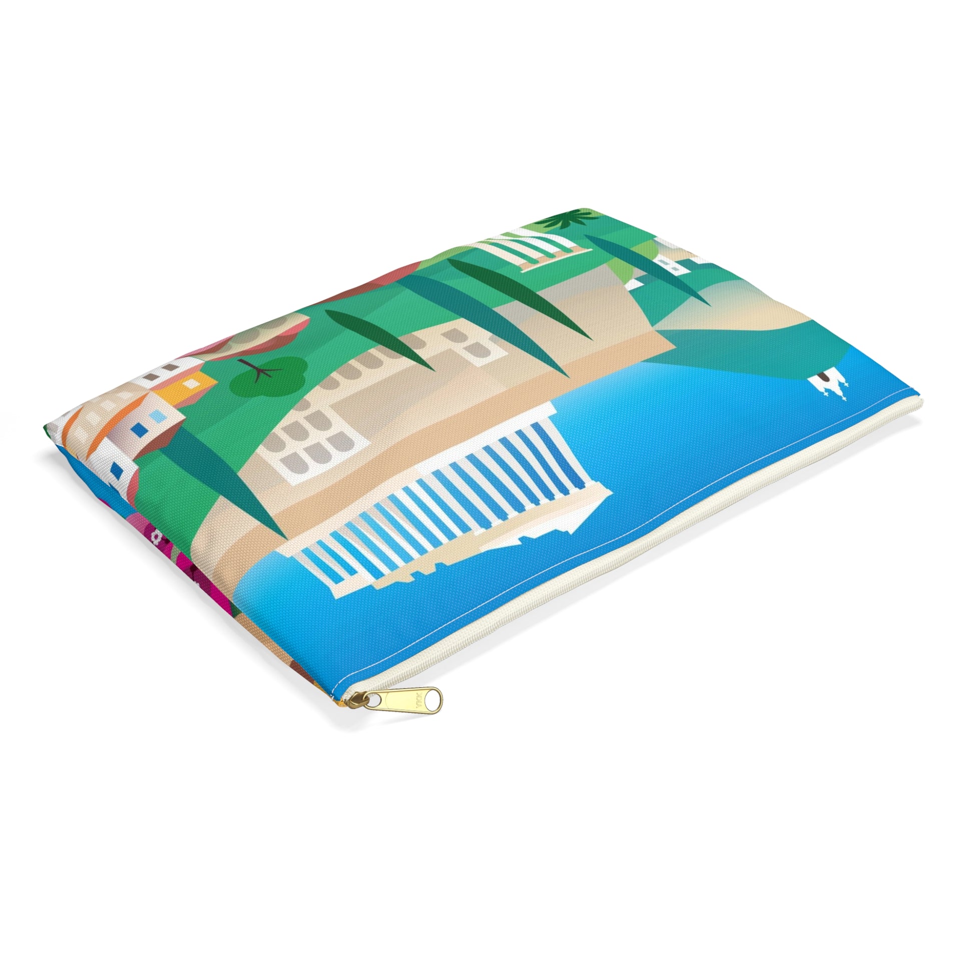 Great for travel, for school, for work. Our flat pouches are constructed from a durable material with a zipper closure.