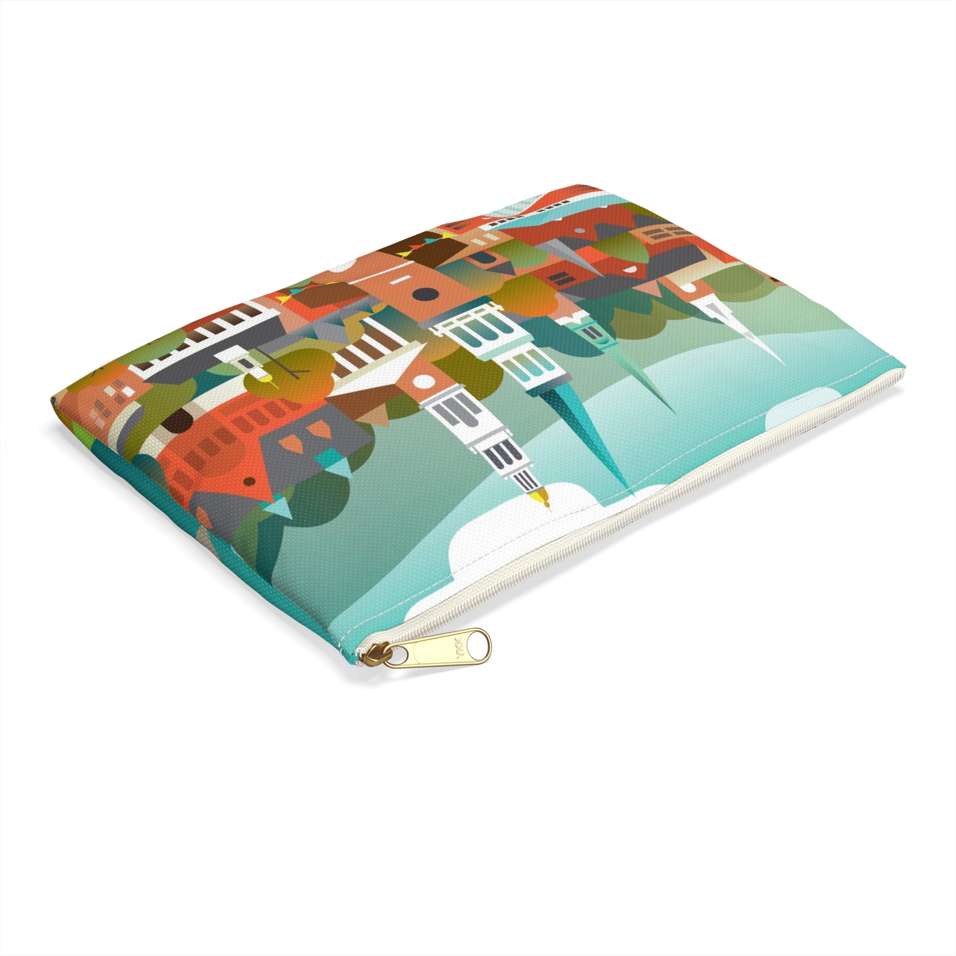 Great for travel, for school, for work. Our flat pouches are constructed from a durable material with a zipper closure.
