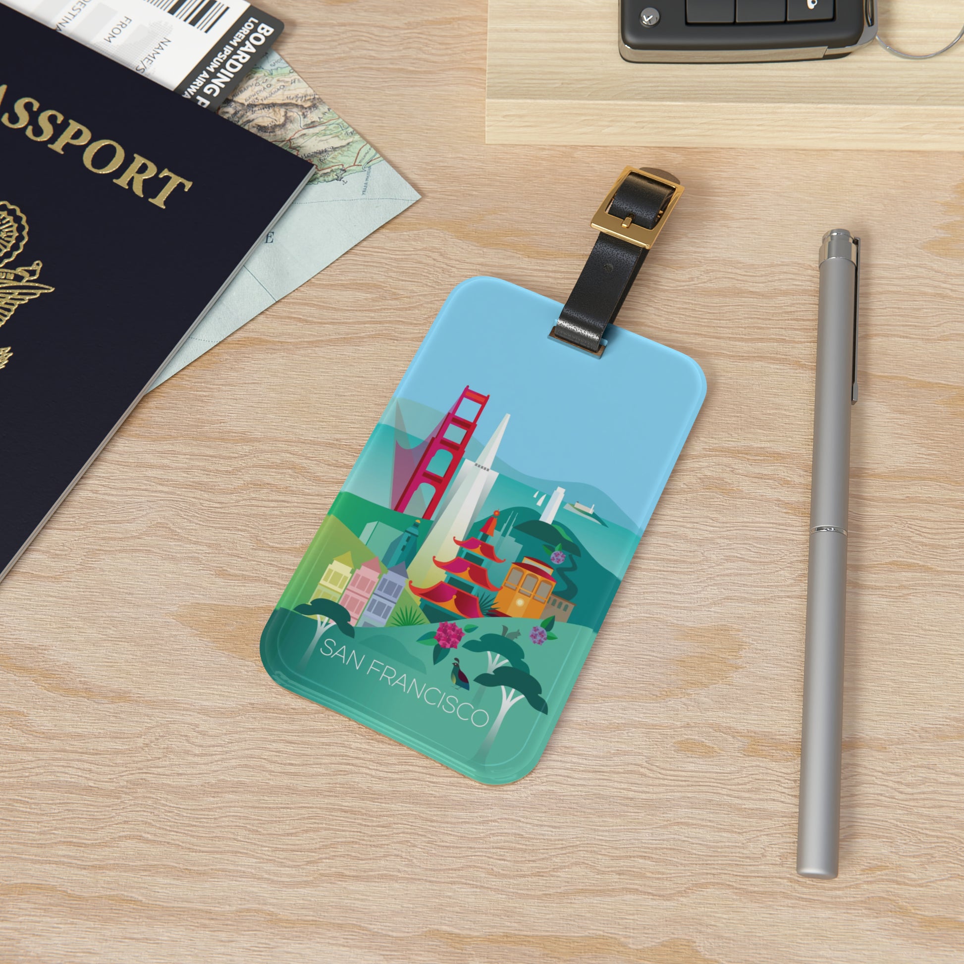 Our acrylic luggage tags come with a business card insert on the back where people can enter their contact information. They're super lightweight, so that they won't add any weight to baggage allowance. Each tag comes with a durable leather strap.
