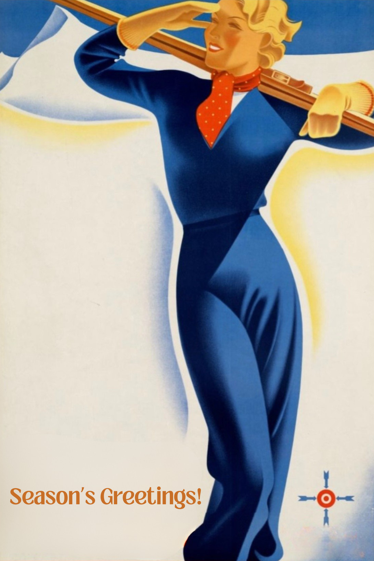 Vintage Skier Season's Greetings Postcard
