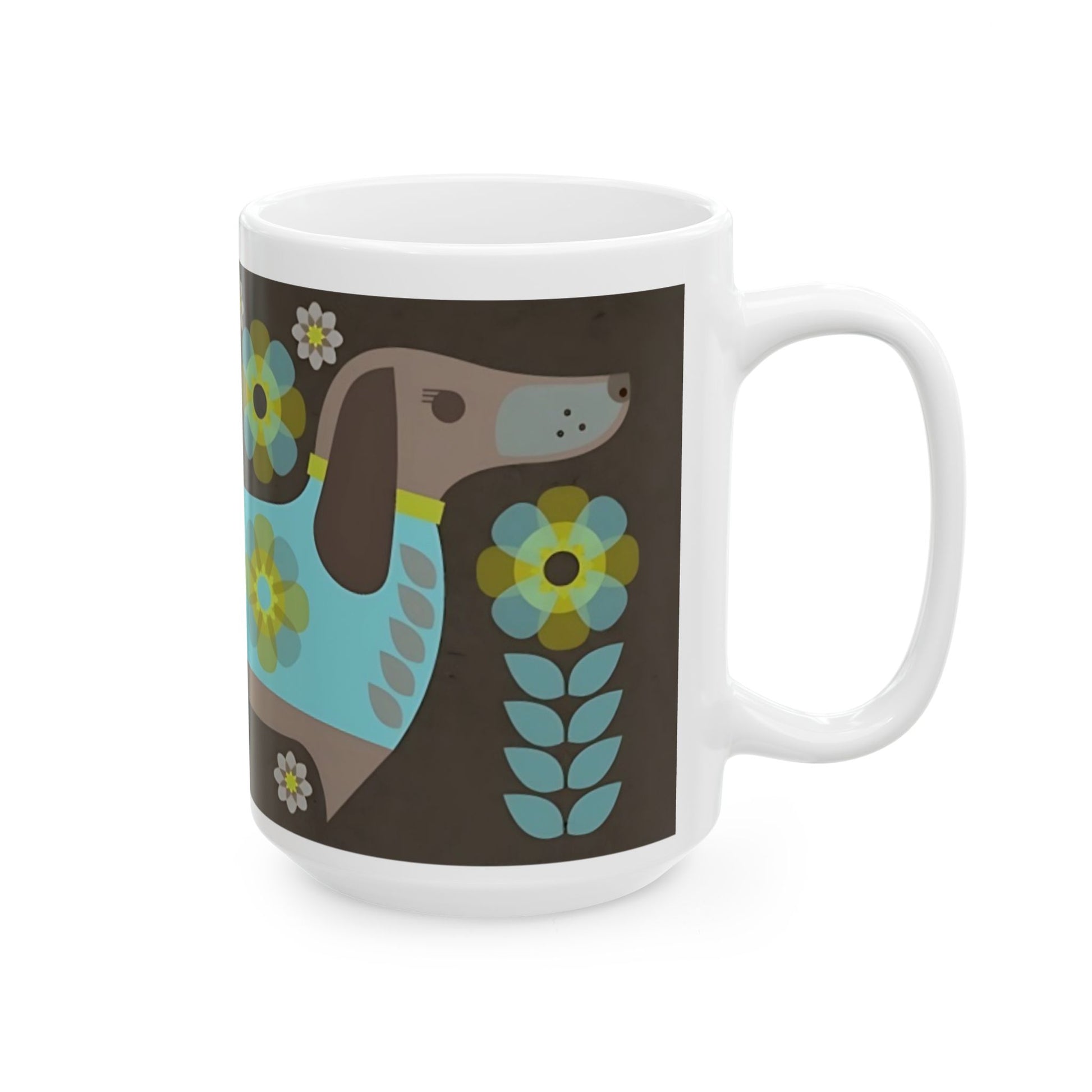 Brighten your day with our exclusive 15 ounce mug featuring our dandy dachshund and daisies!