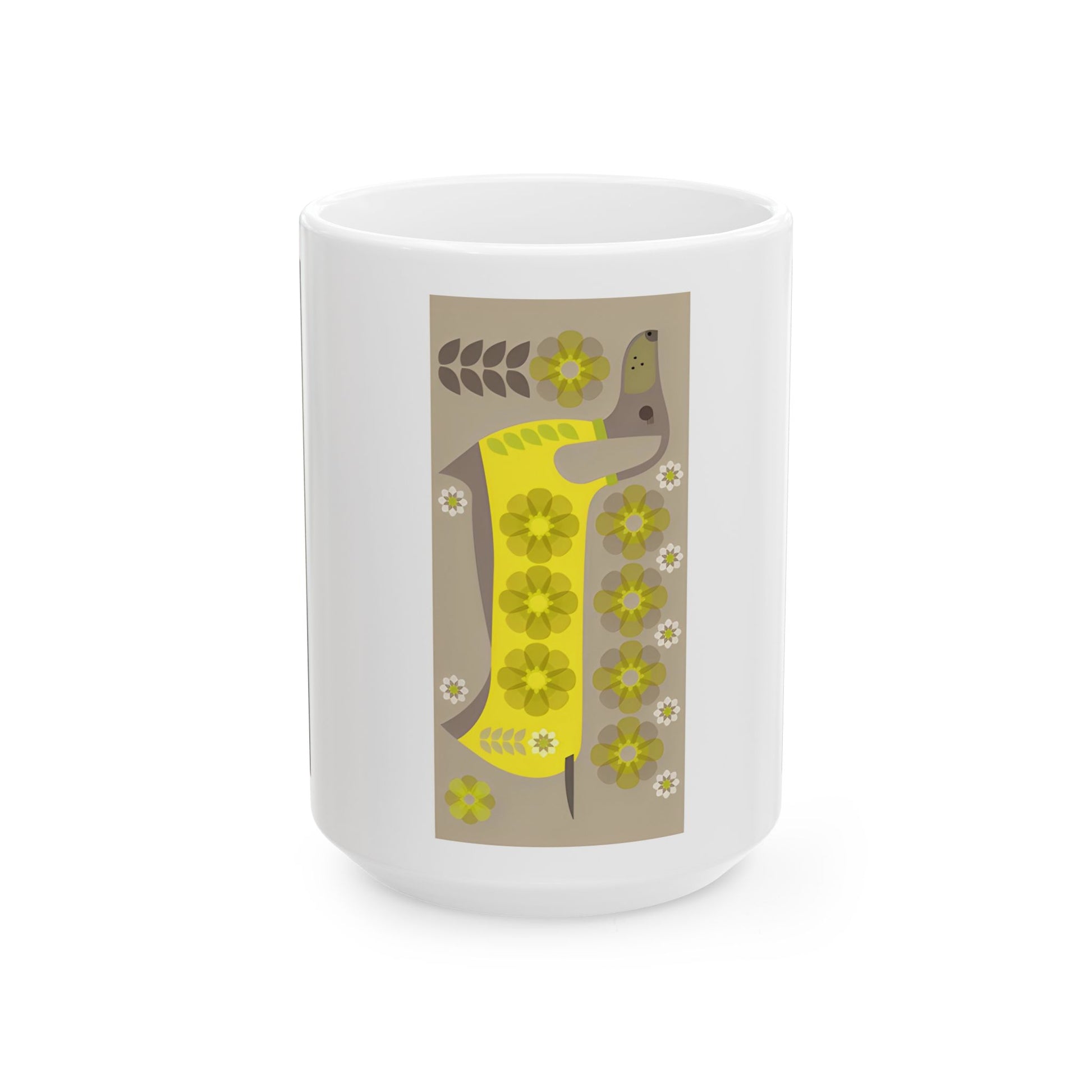 Brighten your day with our exclusive 15 ounce mug featuring our dandy dachshund and daisies!